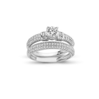 14K Solid Gold Solitaire With Band Engagement Wedding Ring Set