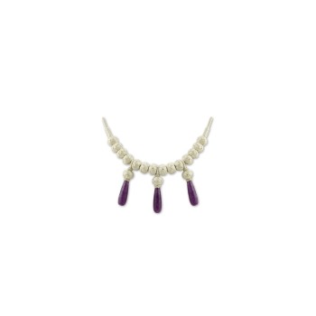 999 Sterling Silver Purple Agate Stone White Bead Handmade Necklace
